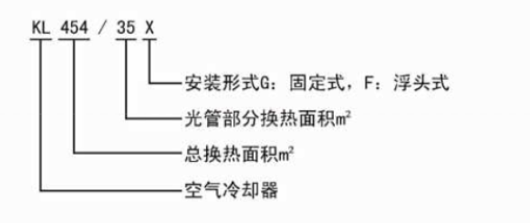 KL型空气冷却器适用水源不足或水质较差的工作环境。空气冷却器可以使利用内部流动载冷剂通过冷却器表面吸收空气中的热量,使空气降温;也可以是利用空气冷却内部工作性质,使工作介质到要求的温度。 空气冷却器广泛应用于石油化工、冶金、矿山、电力、轻工、机床等行业的液压润滑及冷却换热系统。空气冷却器采用空气为冷却介质,无污染、无水资源消耗,具有一般油水冷却器所不及的优点。 型号说明
