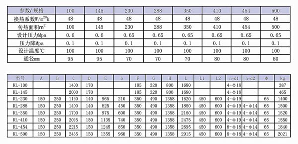 KL系列空气冷却器的换热系数K≤50W/m2·K